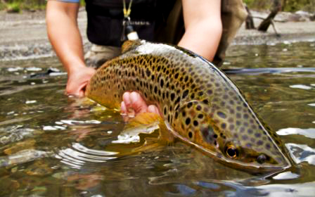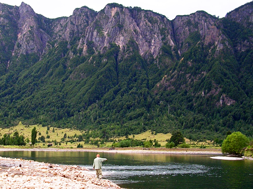 Cinco Rios This lodge is 10 minutes from Coyhaique located right on the banks of the Rio Simpson. This lodge offers alot of different styles of fishing with an abundant number of rivers to chose from. On a average week at Cinco Rios which is six days of fishing we try to fit all of it in. My clients will have the oppurtunity to have two days on a jet boat, fishing one of the most beautiful rivers that I have ever seen the Rio Palamo. Throwing big dry flies on the banks trying to get a trophy brown to come up and eat it. The jet boat rides alone truely will make the trip. Another of the two days you will find yourself walk wadding little stream that are loaded with hungry trout that hardly ever see a fly. The other two days, you will be floating in rafts on the Rio Simpson or other rivers within driving range from the lodge.