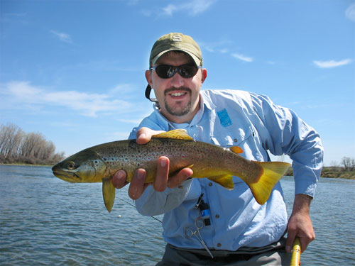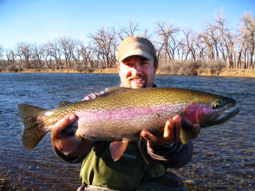 The Big Horn River is one of the best tail-waters in the world and is a blue ribbon trout stream. The head-watersstart below Yellowtail Dam in Fort Smith, Mt.. The first 13 miles are the most well known and most fished, with 6,ooo trout per mile. The trout in the upper section average 16-18 inches with a chance of a two foot trout at every cast. With a great mix between rainbows and browns threw out the Big Horn River. The outfitters I use like the first 30 miles of the river. The Big Horn is truely a fly fishermans paradise with an abundance of nice and long trout runs. The best fishing starts in early Mach and continues to fish great threw out the season all the way until November. There are alot of options when coming to the Big Horn area for my clients. Whether you are a five star kind of guy or just want to rent out a cabin and hire a guide for the day. The prices very on what you are looking for and the package you want. Also available, is a cast and blast trip for pheasants or ducks and geese. These trips start at the end of September and are very popular with my clients. If you have never been to the Big Horn River it is a must see place on the Montana map.