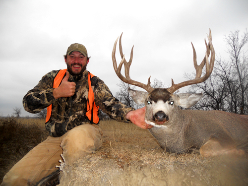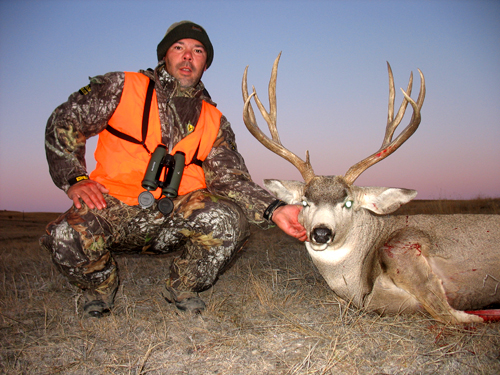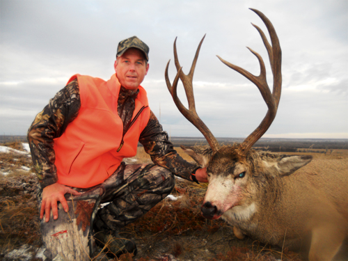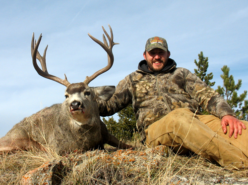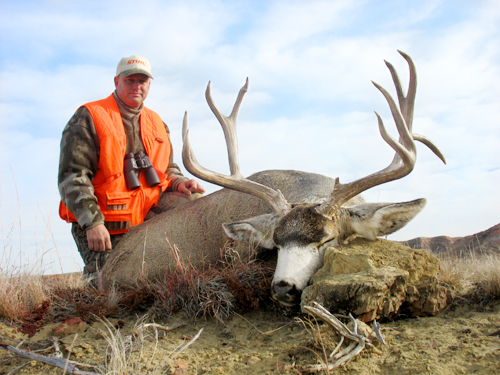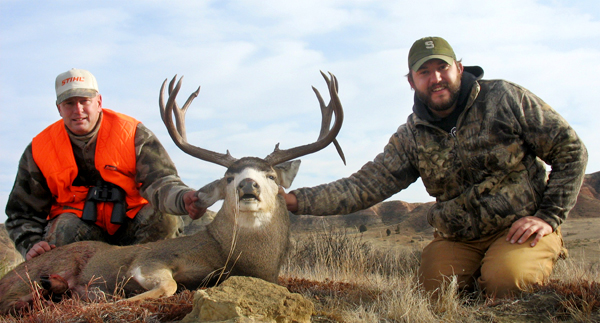 Hunting mule deer is one of favorite animals to hunt. I love to out smart big mature muley bucks. I first started hunting when I was 12 years old, the ranch we hunted only had muley's on it. The rolling hills and break country of eastern Montana hold lots of mule deer. The habitat which they live is another reason why I enjoy hunting them.When the rut hits in early November, you never know what you are going to see. Mule deer bucks cover alot of ground when they start looking for does in heat.The nice thing about hunting mule deer is that you always see alot of bucks to choose from. Hunt prices start at $1500 for managenment hunts and go all th way up to a trophy hunt at $10,000. Once again prices vary on the package that my client wants. Mule deer hunting is very addictive to anyone that loves hunting. I guide alot of guys that hunt whitetails back home and they are amazed at the country that we hunt.